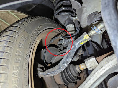 ぶらぶらしてるとホイールに干渉し断線しABS警告灯が点灯します。