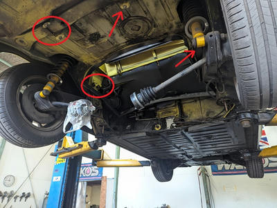 ストラットタワーマウントを外し浮かしてボルトと交換します。