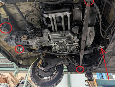 どこかにガタのある音だったのでリフトアップしボンネットを開けました・・・