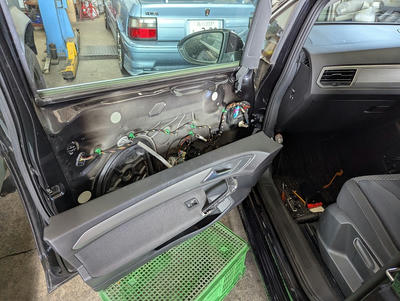 後付けの手動で開けられるインナーハンドルはサブウーハーのマウント