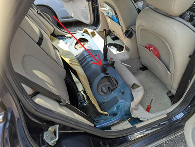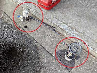 リヤシートを外しフューエルポンプサービスホールを開けポンプ電源を確認、