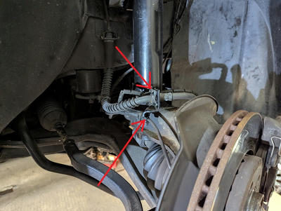 ブレーキホース固定のクリップをハメ直しABSセンサー線も固定します。