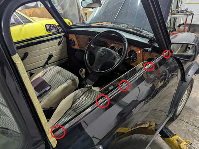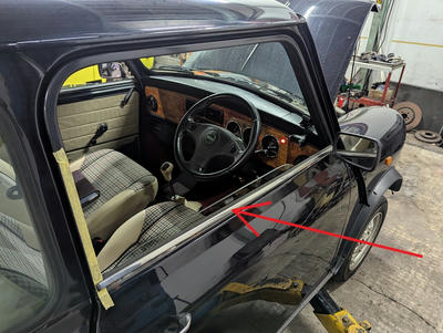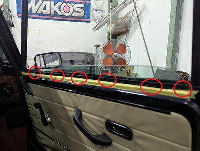 ドアガラスを外す為邪魔になる水切りモールを外します。