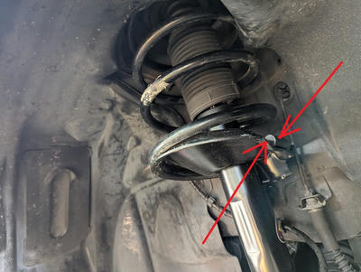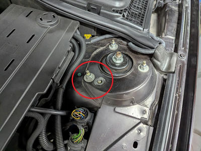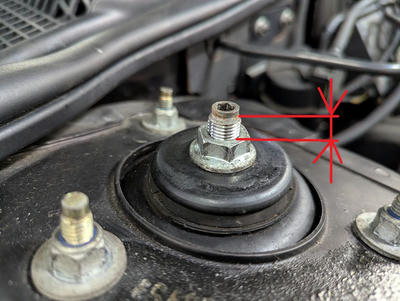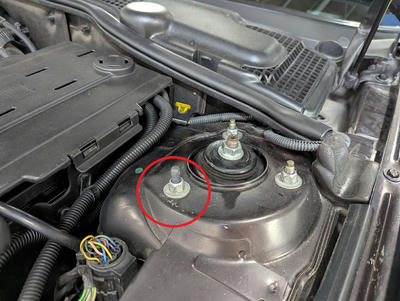 最初は目の錯覚と思い、疑いましたが左のストラットタワーマウントのボルト