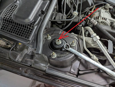 ストラットタワーマウントを外し浮かしてボルトと交換します。