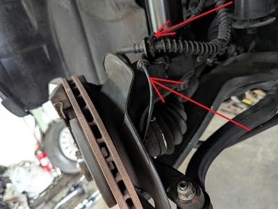 ぶらぶらしてるとホイールに干渉し断線しABS警告灯が点灯します。