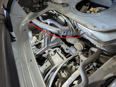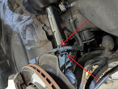 ブレーキホース固定のクリップをハメ直しABSセンサー線も固定します。