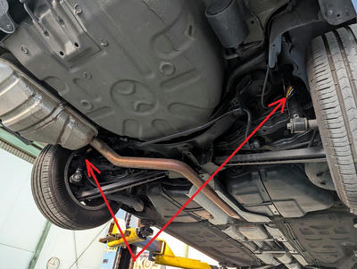 リヤサスからの異音は確認されませんでしたが目視で点検をします。