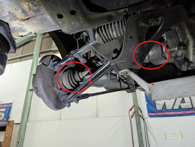こちらはタイロッドリンクにわずかなガタを感じます。(奥のブーツ内)