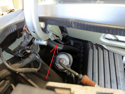 フィラーパイプとホース全体が見えます。