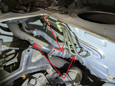 他にもなにかあるか見てるとブレーキホースのクリップが表裏逆ですね~