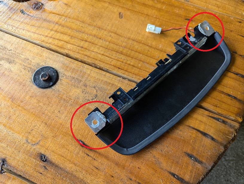 ナンバー灯本体もトランクパネルに強力に両面テープで接着されています。