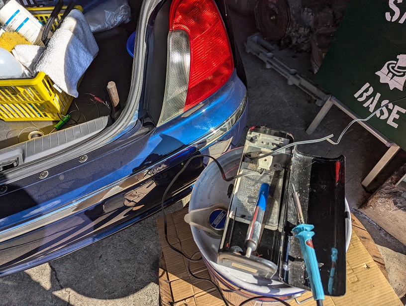 ナンバー灯本体はトランクパネルに新しい両面テープで接着しますが