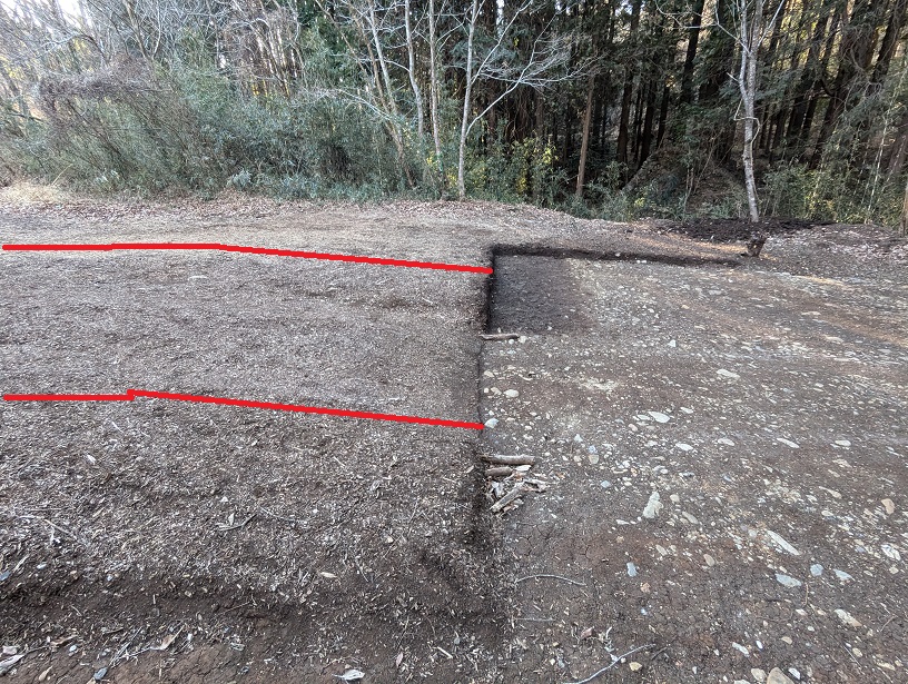 泥濘防止で最初に掘った場所ですが、数ヶ月で浅くなってきたので