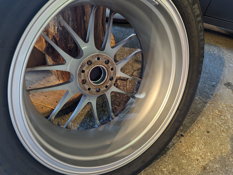 ホイールに縁石跡かわかりませんが少しゆがみがありましたので修正しました。