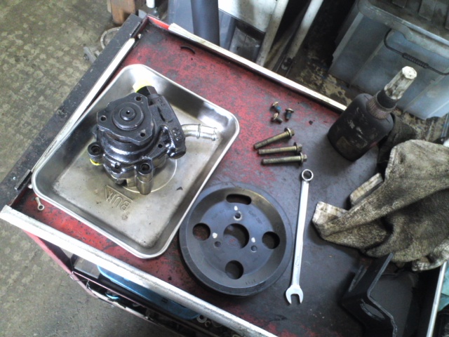 奥にオイルキャッチタンクが見えますが、これも取り外し中身を