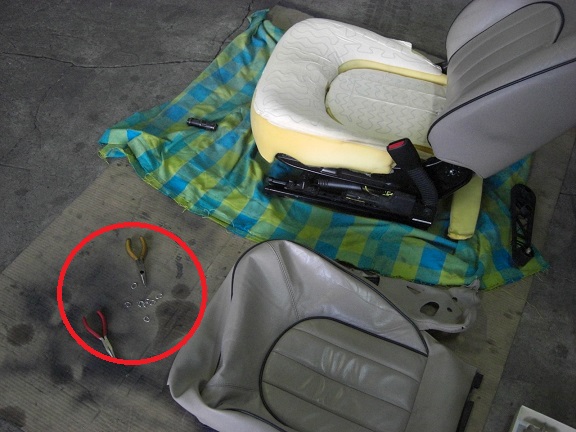 フロント右シートの座面のカバーを交換します。
