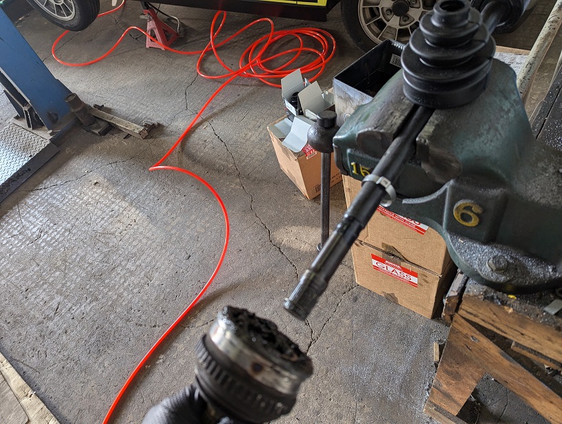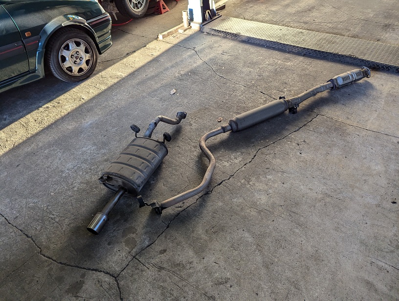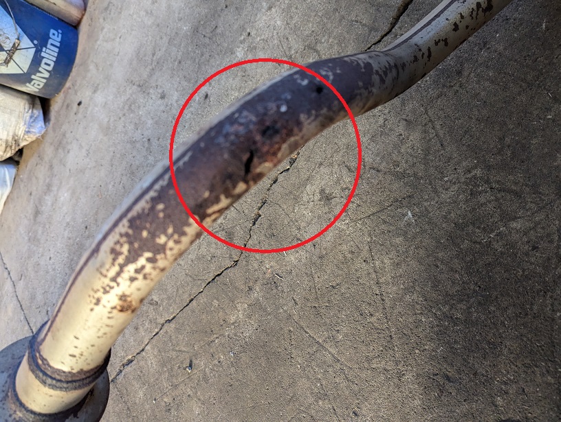 EXシステムの腐食パイプを新規に製作し直し溶接で繋ぎます。