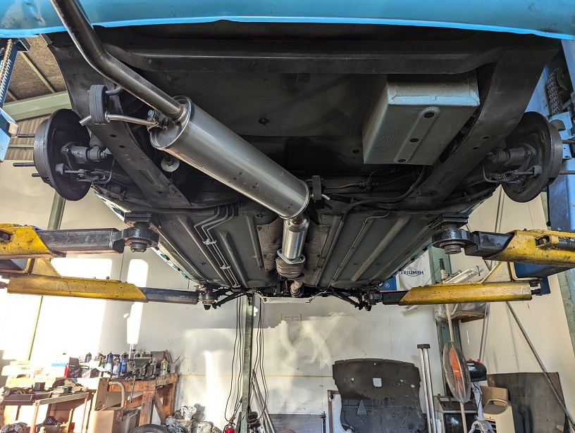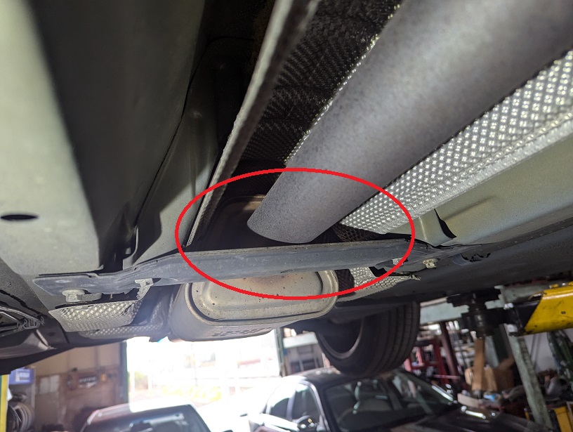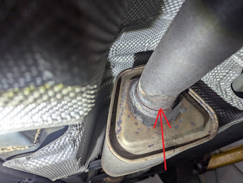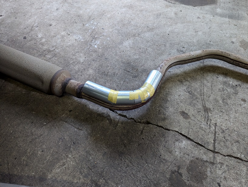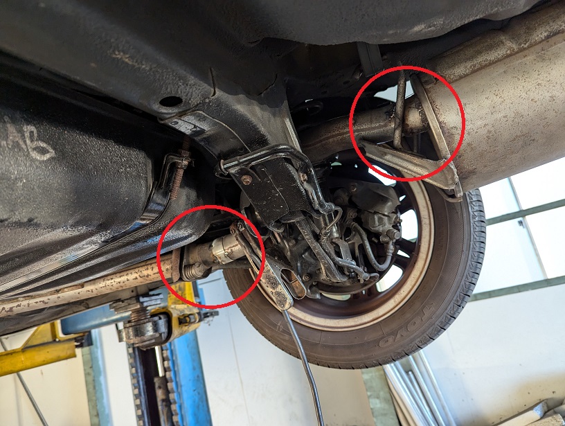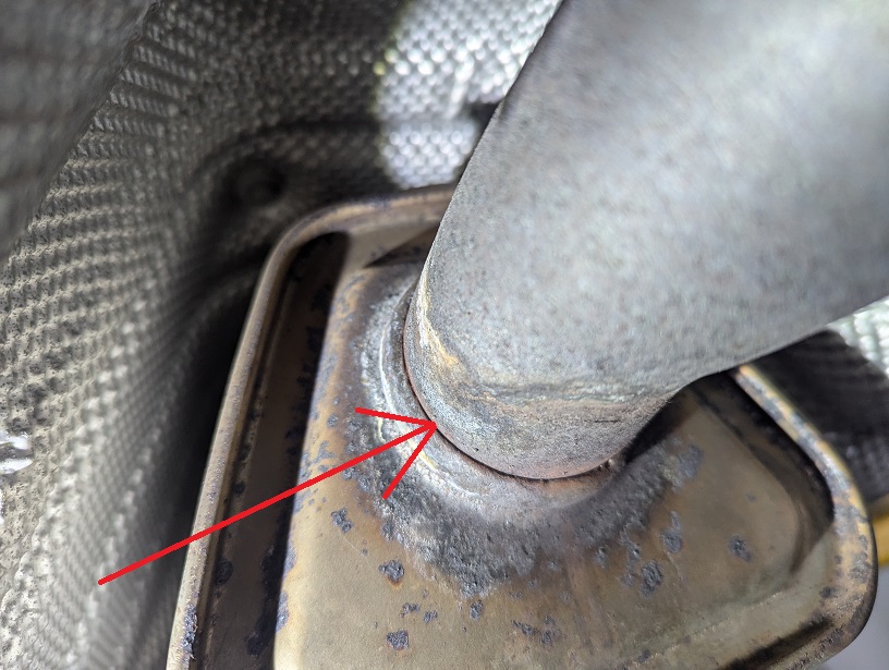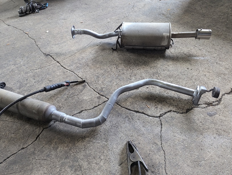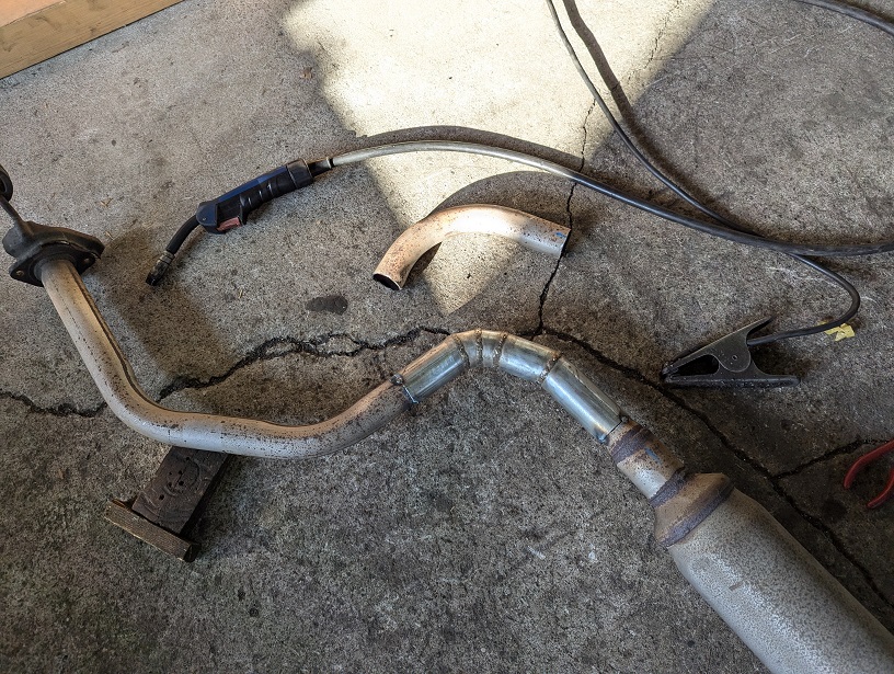 仮溶接をしたら元のフランジを取り付け、リヤマフラー間のパイプを