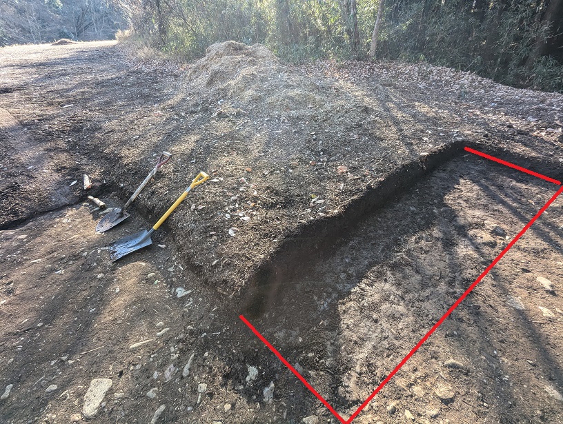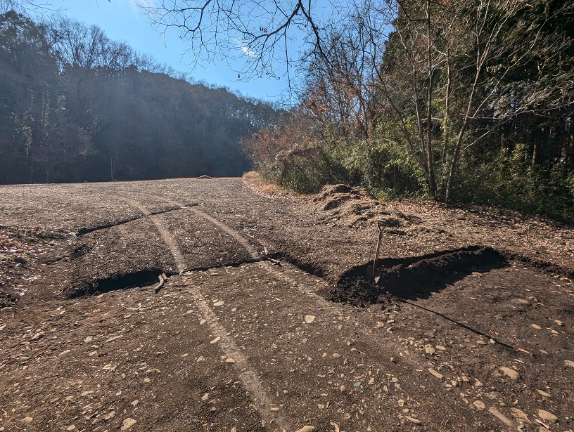粘度質層まで撤去して石層を出せばしっかりした地面になります。