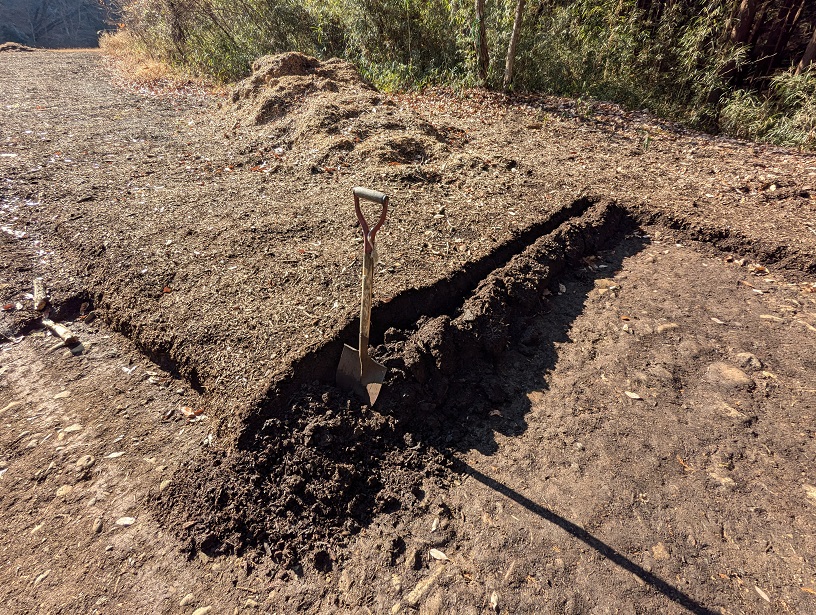 次回は撤去作業の前に在庫のウッドチップを移動しないと出来ません