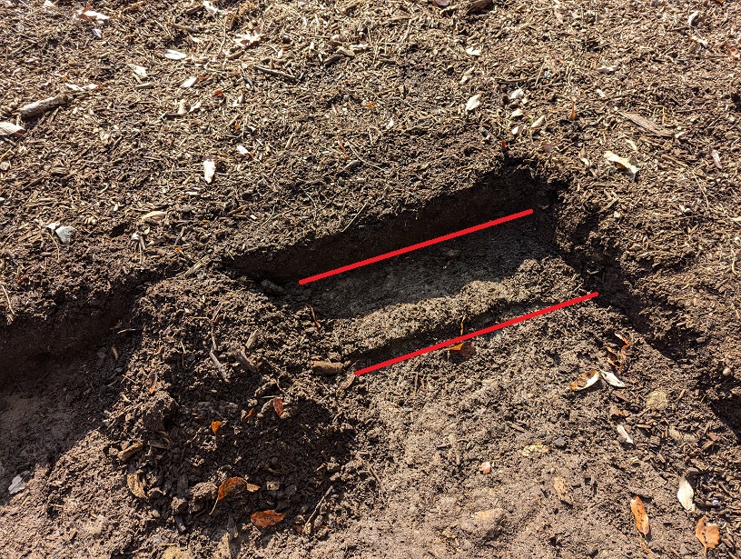 上がウッドチップ層下が粘度質層でその下が石層です。