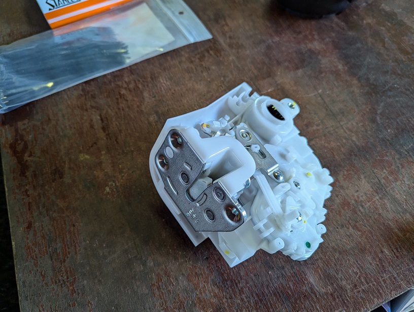 動作確認するとドアラッチがドアロックアクチェーターと一体で