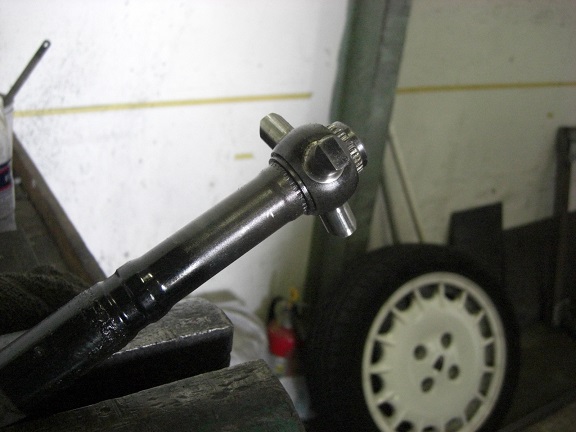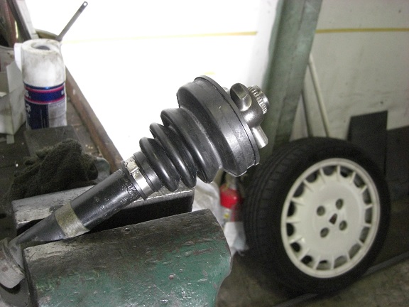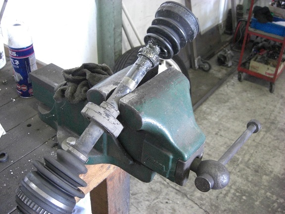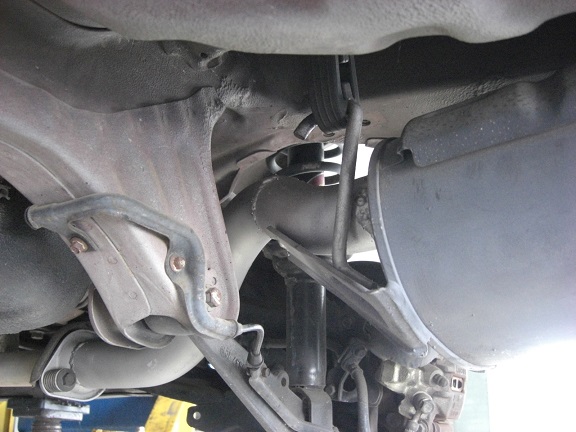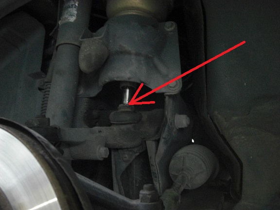 フロントストラットのジョイント部が見えますが、抜こうと思ったシムが