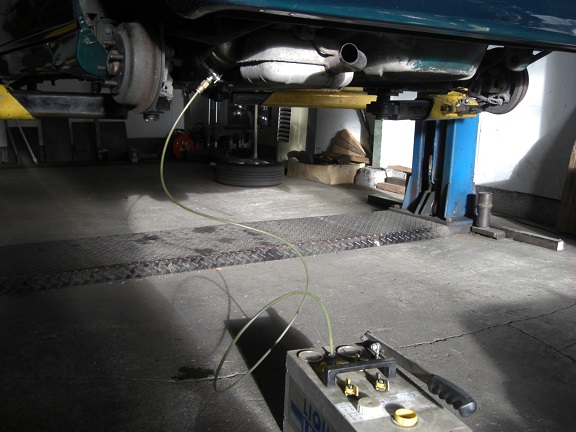準備ができましたので、システムを加圧して車高を上げてみます。