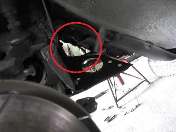 ステアリングラックを交換する際、サブフレームを少し下へずらし作業スペースを
