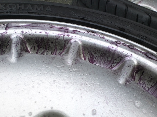 まずはザッと洗浄し鉄粉除去剤でブレーキ粉の黒ずみを落とします。