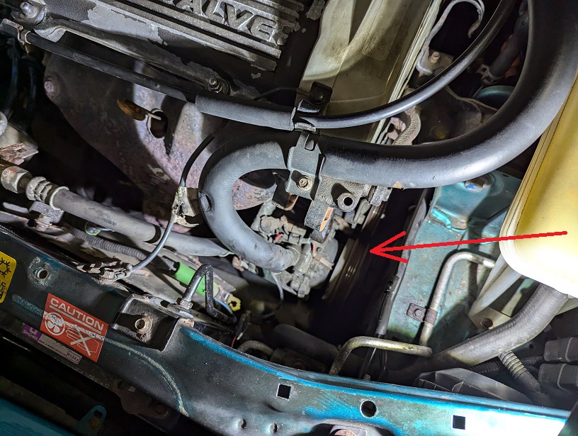 ベルトを外しプーリーを一つ一つ確認をするとコンプレッサーのプーリーが