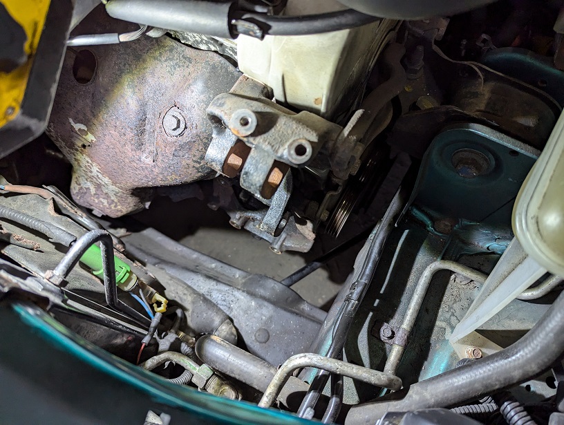取り付ける際はパワステポンプのブラケットも外してダメージをあたえないよう