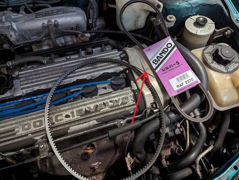 再取付中ですがパワステポンプベルトのコードが切れてるので交換します。