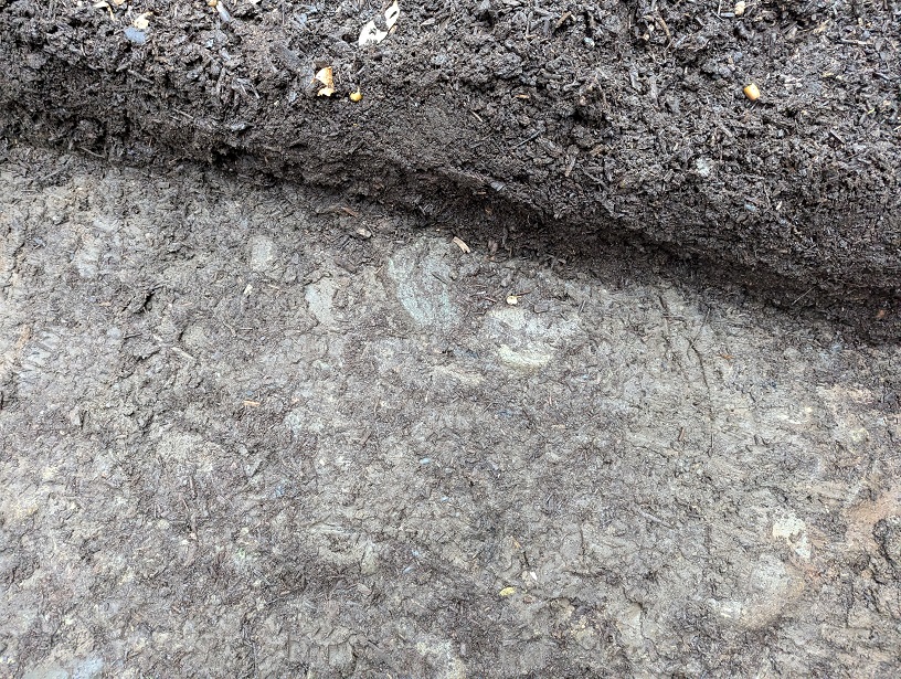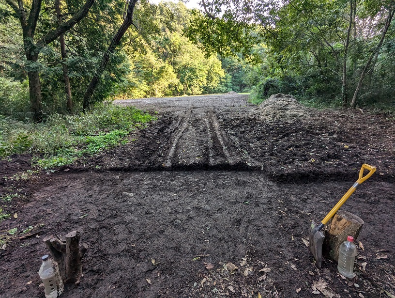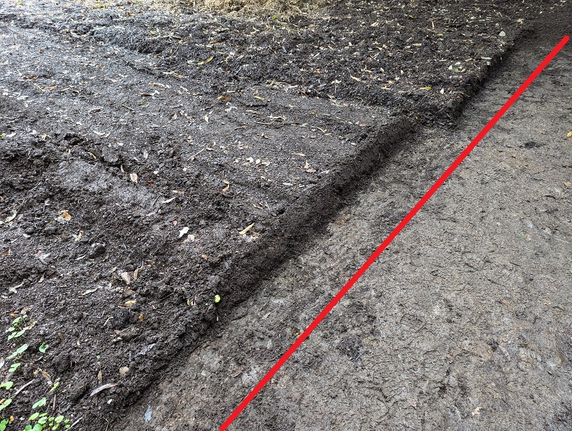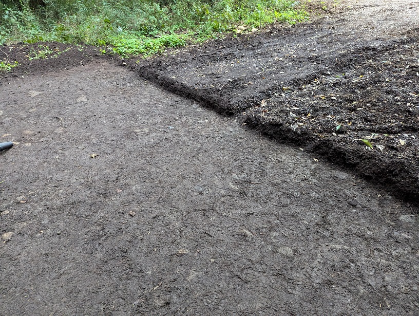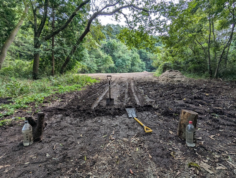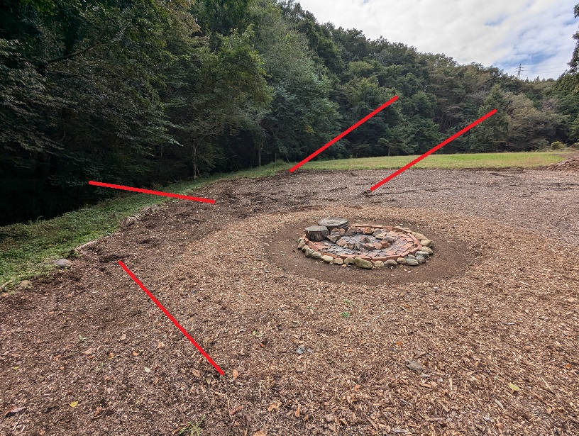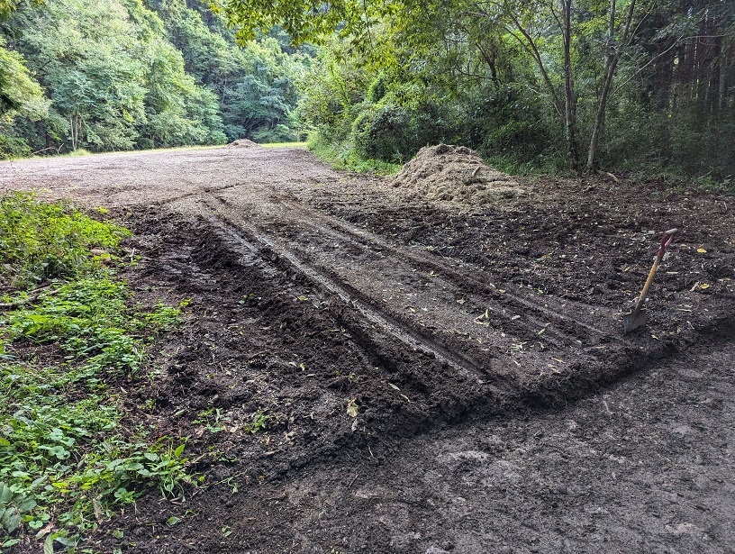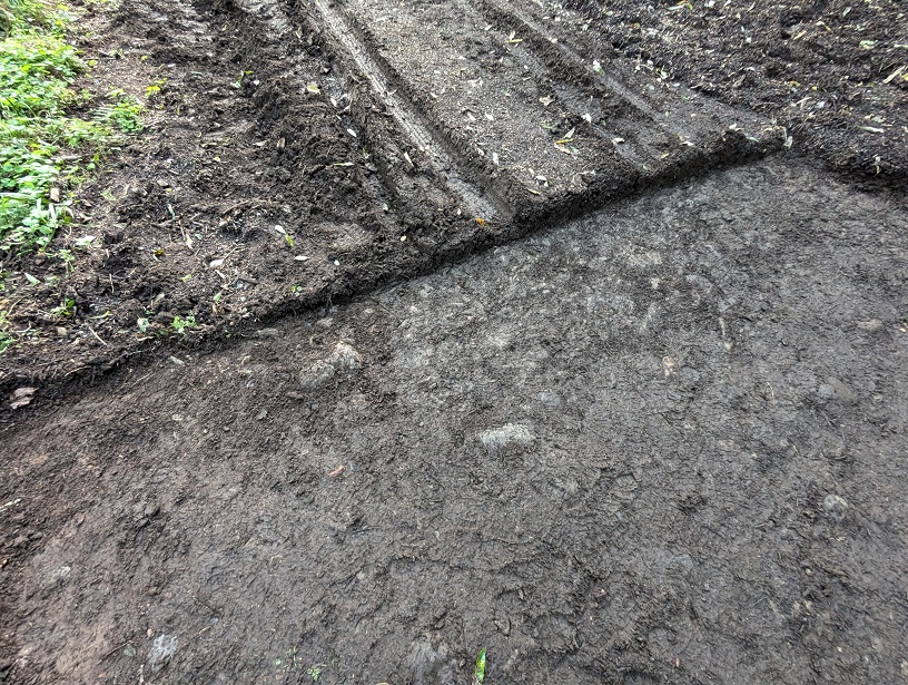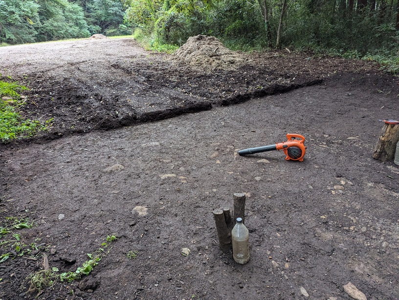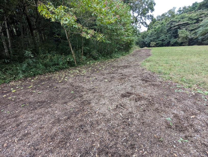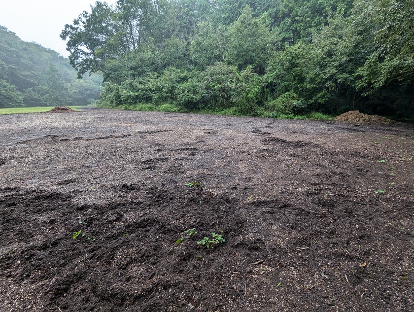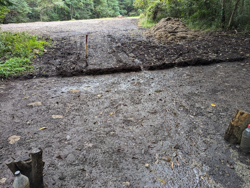 先週綺麗に整地したウッドチップエリアはまたイノに耕されてました・・・