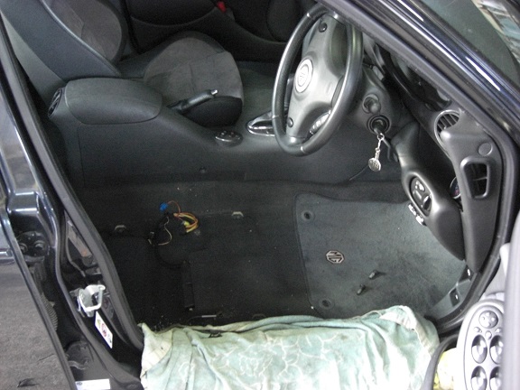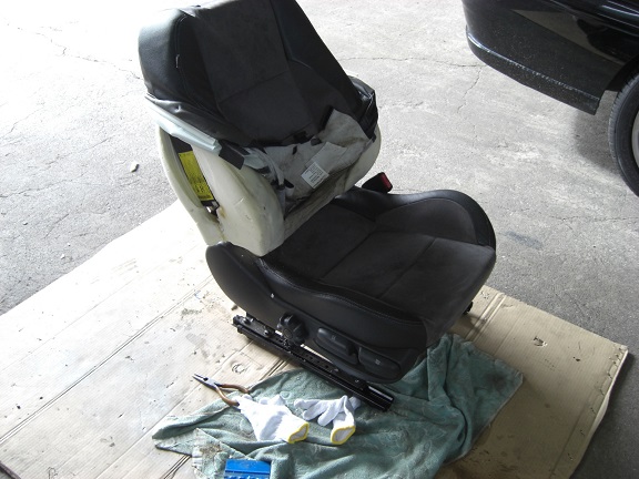シートにはSRS関連の配線が接続されていますので、バッテリ電源はカットしておきます。