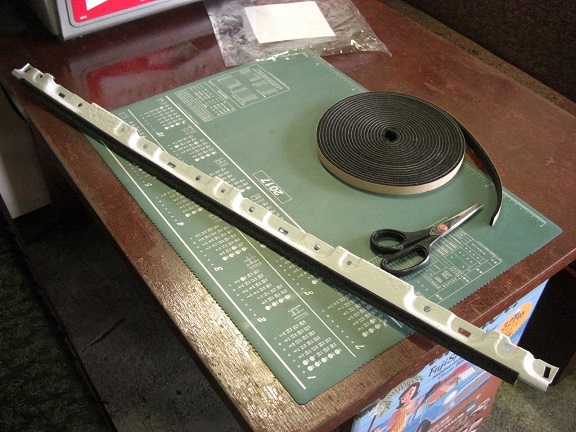 まずはブラケットに純正と同様にウェザーストリップの補強シールを貼ります。