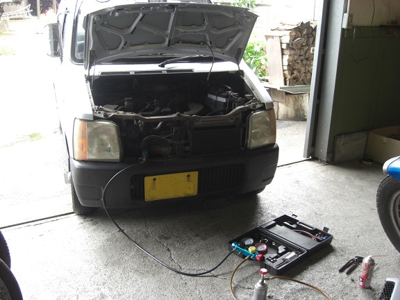 という事で前置きが長くなりましたがエアコンのガスを補充してます。