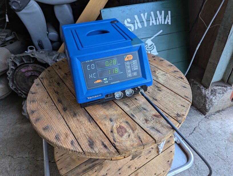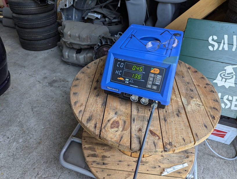 整備が終わり検査場に向かいましたが、テスター業者で排ガスをチェックしたところ