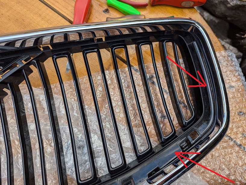 グリルメッシュにクロームインサートがあるので上下切るにしても