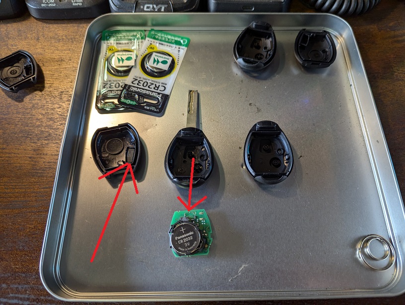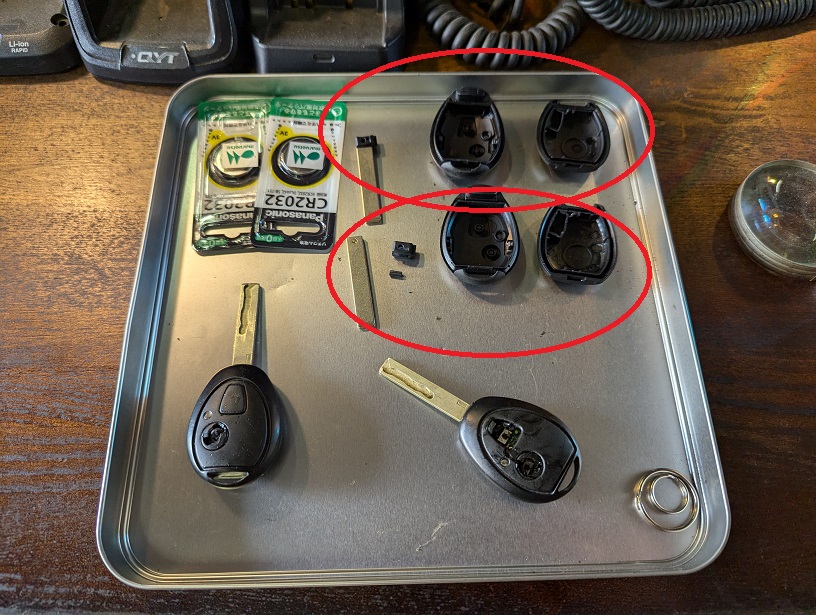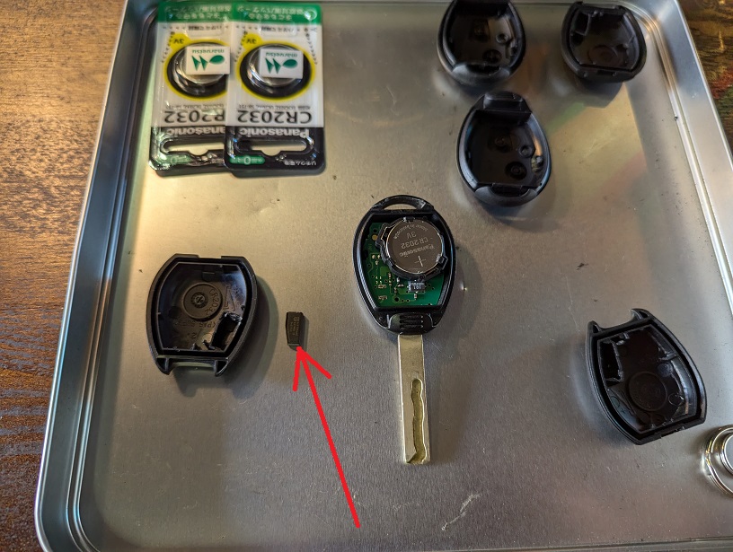 紛失するまえに新しいケースへ取り付けてボタン電池と基盤を外します。