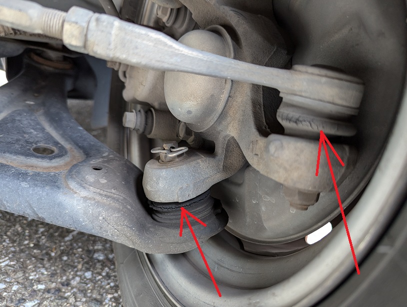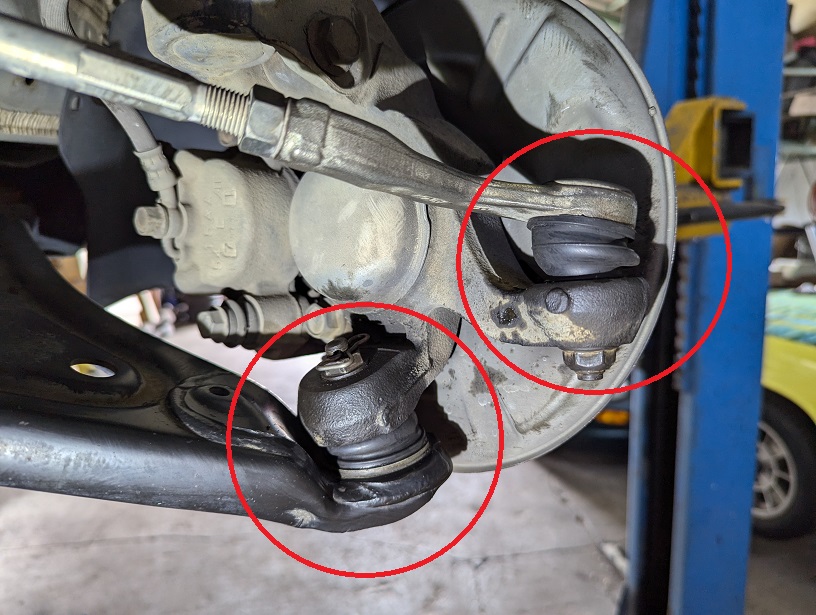 タイロッドとラック間のリンクジョイントにガタがあります。