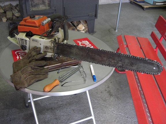 来シーズンの薪作りに備えチェーンソーの刃を研ぎます。