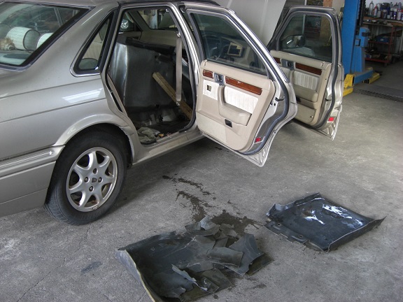 現車の方は、リヤフロアーカーペットの上が濡れています。