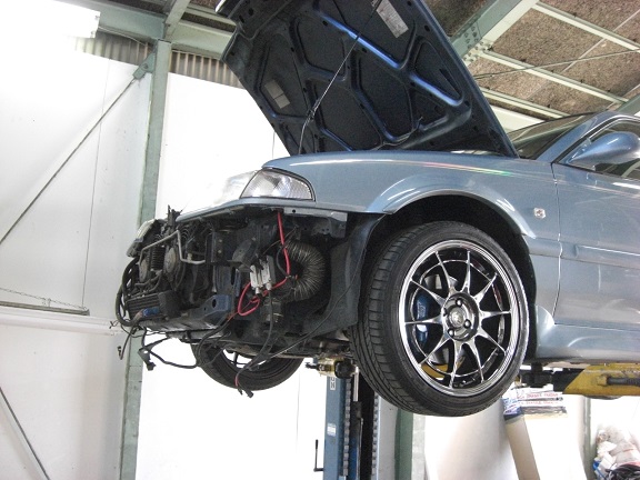容量アップしたラジエーターを取り付ける為、ボディーパネルに加工が