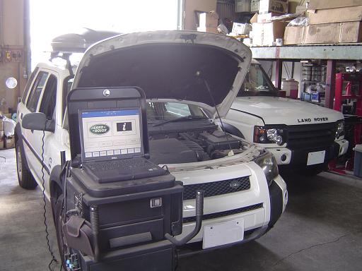 デカいランドローバーの中に1台だけちっちゃいのが混ざってます。