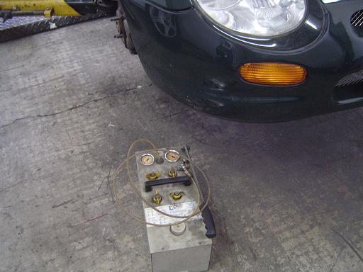 まず、元々のハイドラシステムの減圧をポンプで行います。