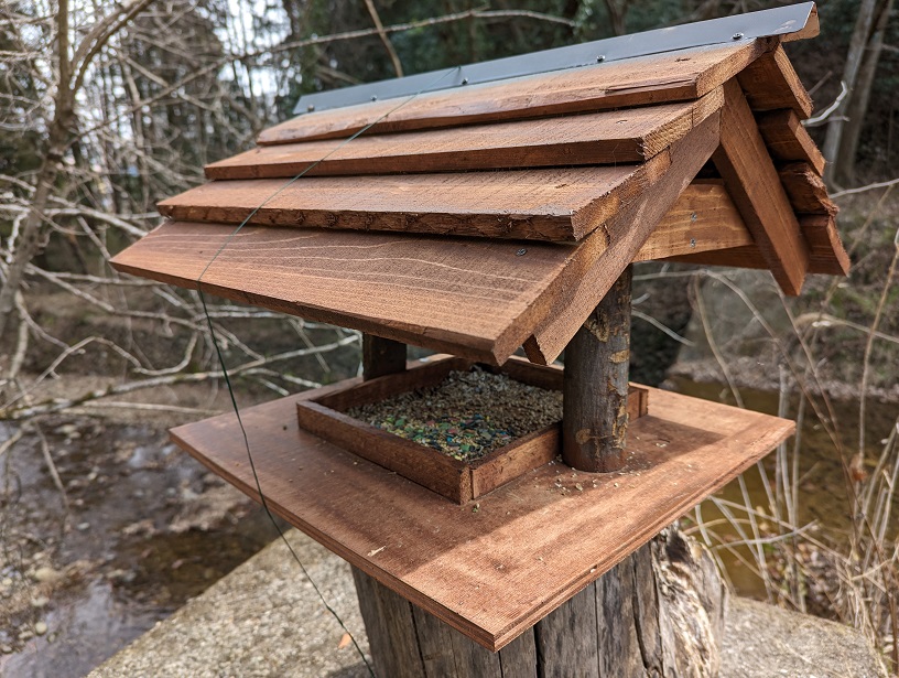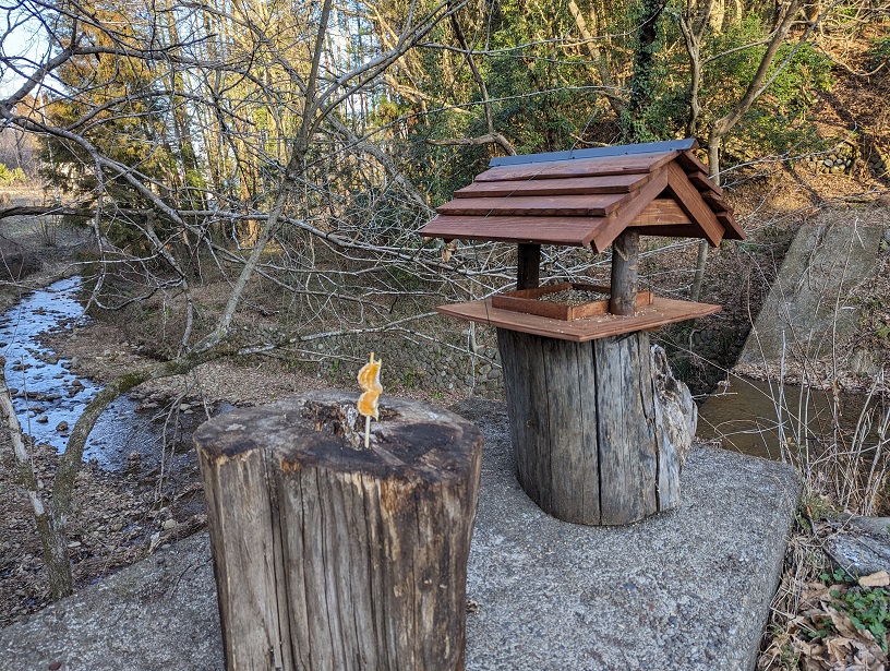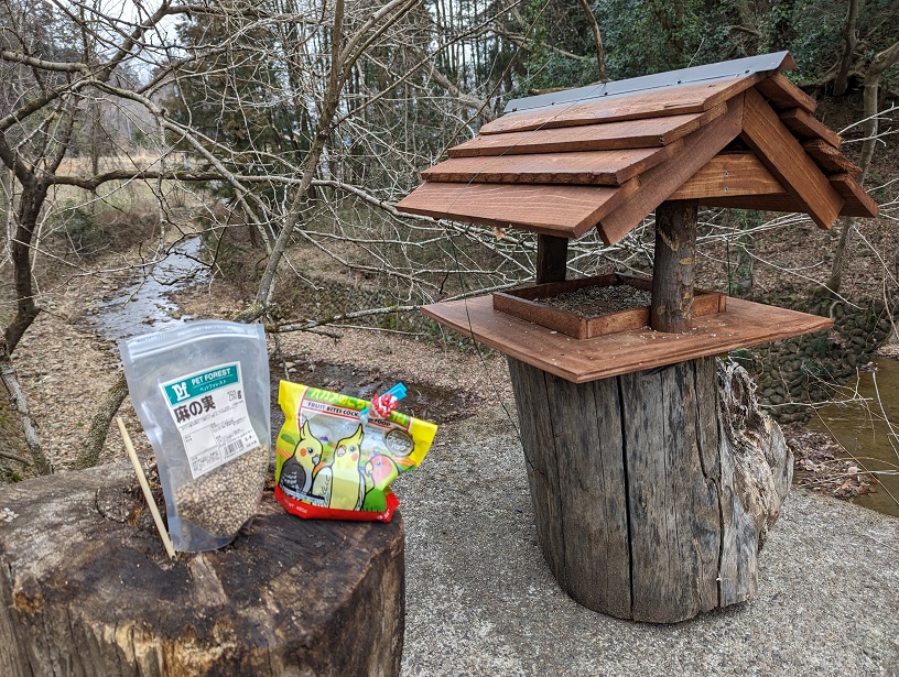 野鳥観察用の餌場に補充