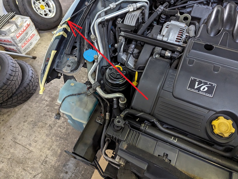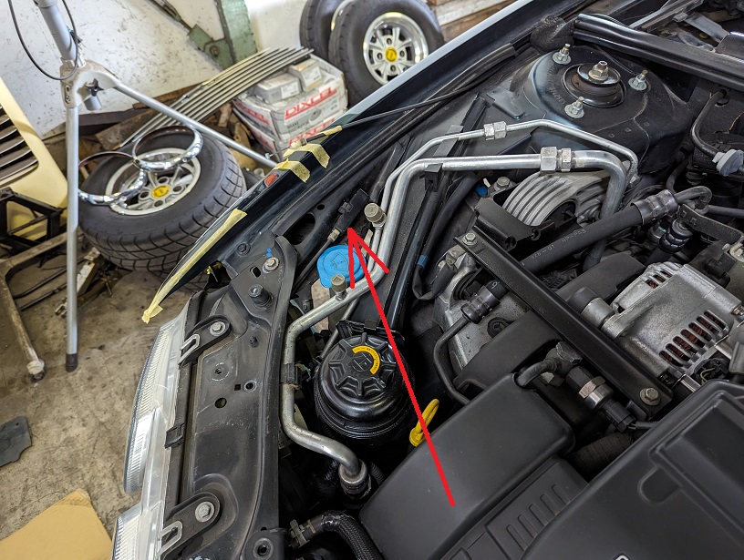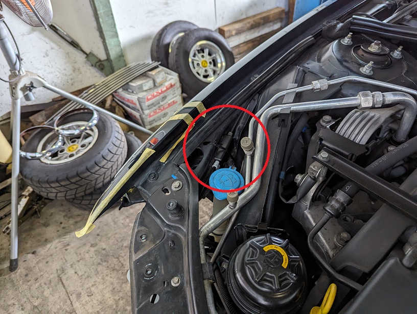 キャッチのワイヤーはラジエーターサポート側に付いています。