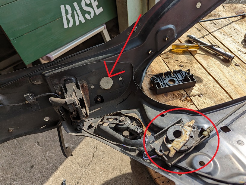 途中の写真は忘れましたがウインドウレギュレーターが変形してます。